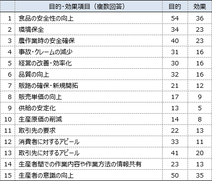 これらの目的のうち産地・経営体で重視するものを明確にし、その達成のために必要な点検項目の設定、実施結果の点検・評価、及び評価に基づく改善を継続的に行なうことが必要と考えられる。