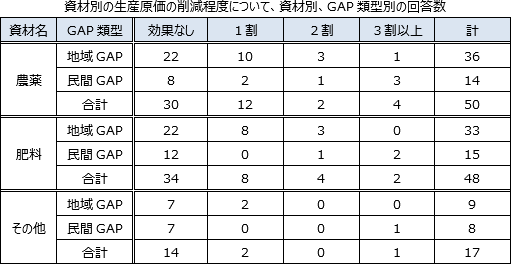 GAPの類型別では、資材削減の効果について大きな差異はみられなかった。